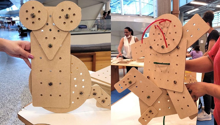 Uma experiência inventiva e criativa a partir de diversas placas furadas, com tamanhos e formatos diferentes, que podem ser parafusadas entre si, possibilitando a realização de diversos projetos e criações. Além de parafusar as placas, também é possível customizar as produções com mangueirinhas coloridas.