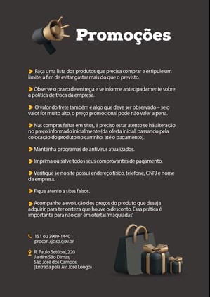 A partir de segunda-feira (21), o Procon de So Jos dos Campos intensificar a fiscalizao junto a estabelecimentos comerciais, fsicos e virtuais (sites de venda), em razo dos descontos e ofertas da Black Friday, que devem aumentar com a proximidade do dia 25 (sexta-feira).