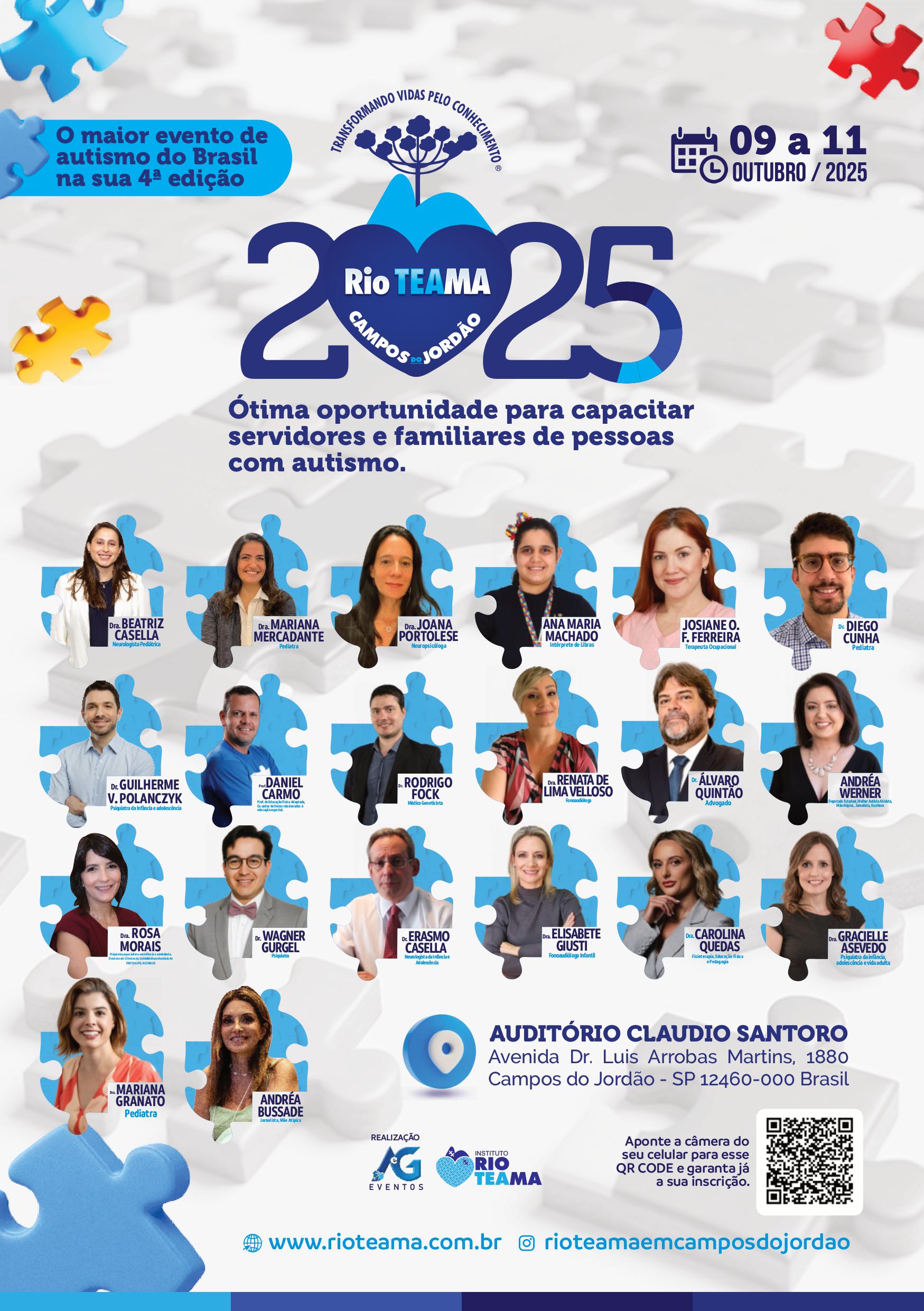O RIO TEAMA consolidou-se como um dos melhores eventos sobre o TEA no Brasil, pelo seu pioneirismo - realizamos no Rio de Janeiro desde 2018, anualmente - e pela qualidade dos palestrantes e do calor humano com que a organização recebe os participantes, muitos deles vindo de todas as regiões do Brasil!