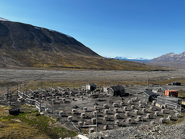 Aqui, devido à alta latitude, 78° 13′ N, 15° 39′ L quase metade do ano é noite permanente, seguida por igual número de meses com o sol da meia-noite à vista.