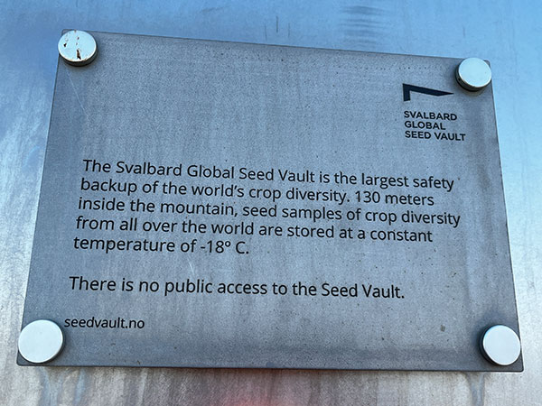 • Fortaleza da Vida Vegetal – Svalbard abriga o “Silo Global de Sementes†(Global Seed Vaut), uma espécie de cofre de sementes, construÃdo cerca de 130 metros dentro de uma montanha gelada, onde estão armazenadas mais de um milhão de amostras de sementes e plantas para alimentação humana, a uma temperatura perene a -18º C. Caso haja uma catástrofe, a humanidade poderá recomeçar a agricultura.